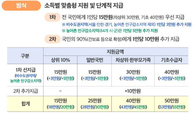 - 지급 시점: 2차는 소득 하위 90% 대상이며, 9월 말~10월 초 예정입니다.